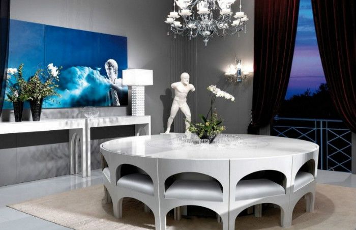Что получается, когда дизайнеров вдохновляет старинные памятники архитектуры? Например, вот такая модная ультрасовременная мебель – результат работы итальянских дизайнеров. Копания Nella Vetrina предложила оригинальную коллекцию мебели для столовой Visionnaire, внешне напоминающую Колизей. Под круглым столом идеально вмещаются мягкие стулья – элегантно, красиво и экономно!